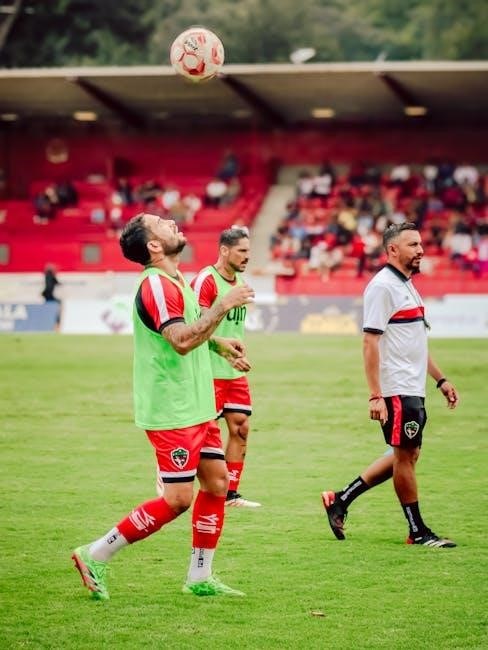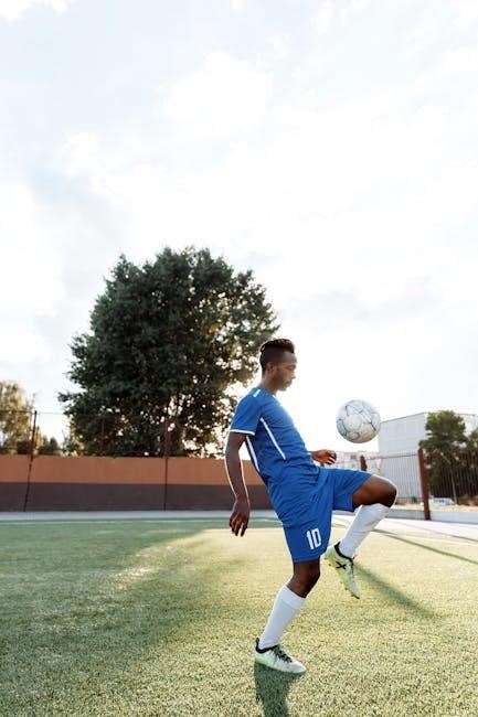 PDF resources detail drills like “figure-eight” patterns and cone hurdles, enhancing agility and coordination. Coaches can modify cone spacing to adjust difficulty, challenging players of all levels. Emphasis is placed on maintaining head up awareness while dribbling, scanning for passing options and opponents.
